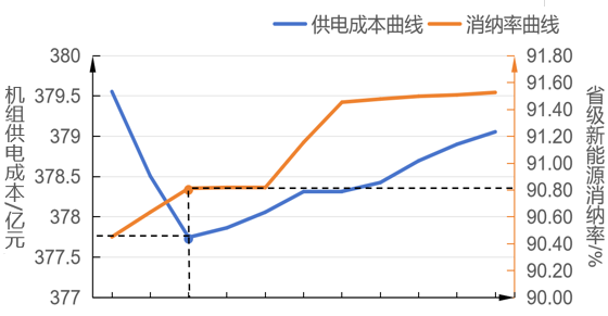 通过调整系统调度策略,该省新能源消纳率从90.45%升至91.53%,供电成本呈现先下降后上升的趋势;新能源运行理论合理消纳率为90.81%。