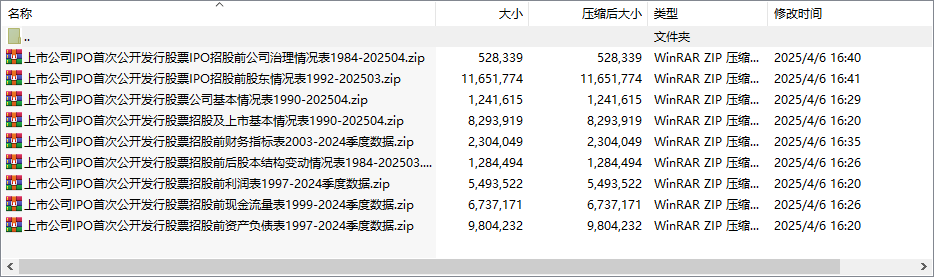 上市公司IPO首次公开发行股票招股前数据1990-2025资产负债利润财务指标公司治理股东等.zip