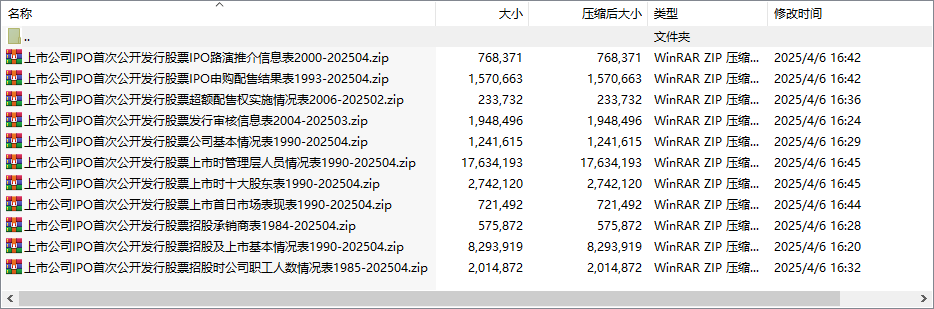上市公司IPO首次公开发行股票公司基本情况表1990-202504.zip