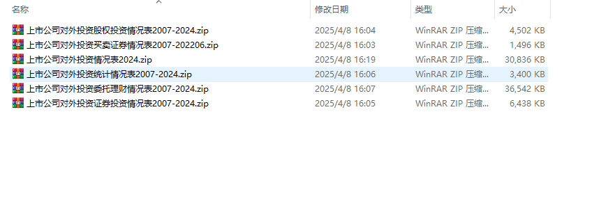 上市公司对外投资股权投资情况表2007-2024.zip