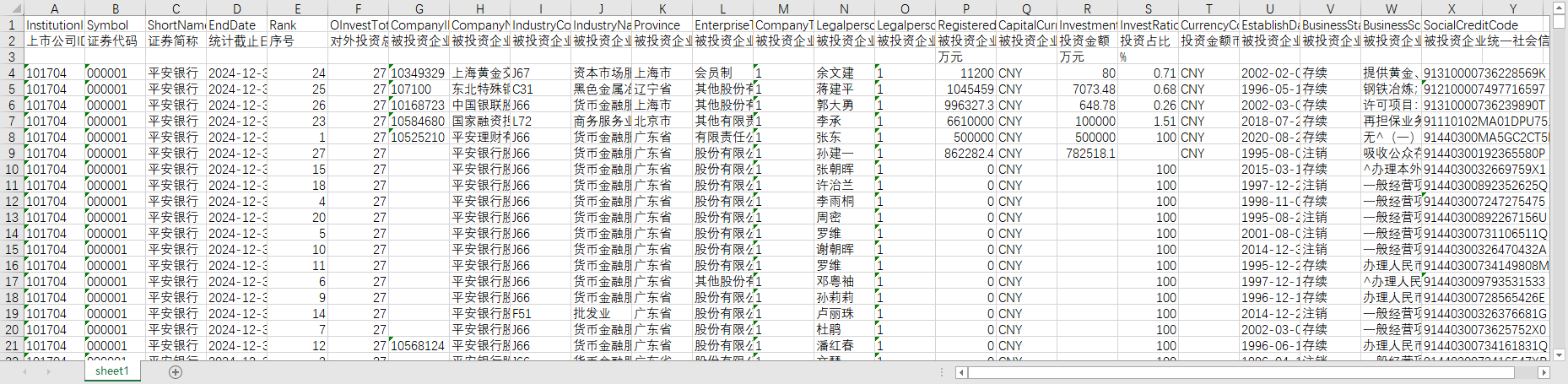 上市公司对外投资数据2007-2024股权投资买卖证券委托理财等