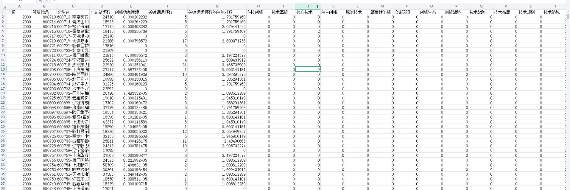 资料范围:6万多个样本,5591家企业,包括原始数据词频(词频总计385个)和最终计算结果。