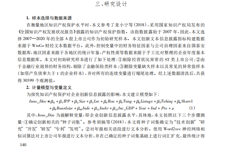 参考文献:周泽将,汪顺,张悦.知识产权保护与企业创新信息困境[J].中国工业经济,2022(06):136-154.DOI:10.19581/j.cnki.ciejournal.2022.06.020