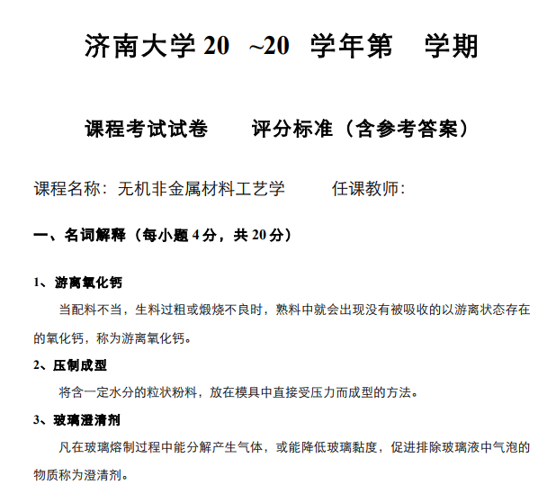 01济大济南大学无机非金属材料工艺学及答案一套(即一年的)