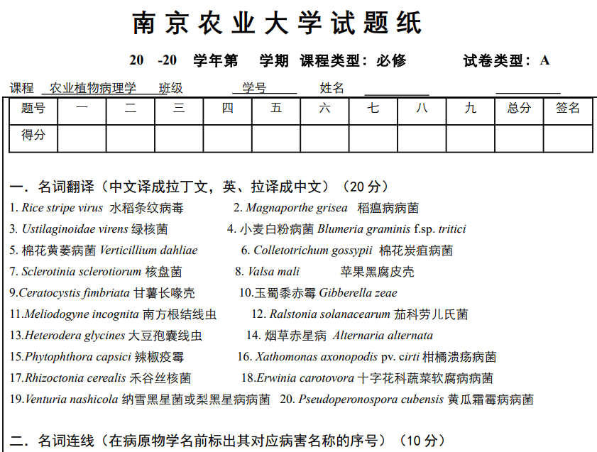 01南农南京农业大学农业植物病理学及答案一套(即一年的)