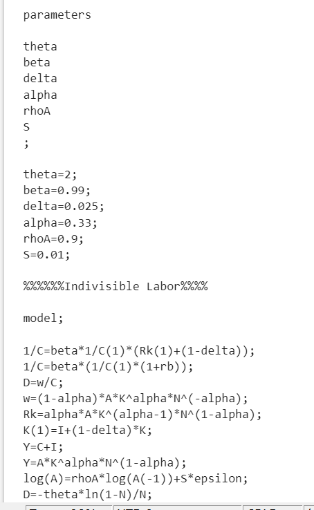小白入门学RBC,写dynare找不到稳态值,RBC模型(不可分的劳动)写dynare但是报错了,有没有大佬帮忙看一眼代码