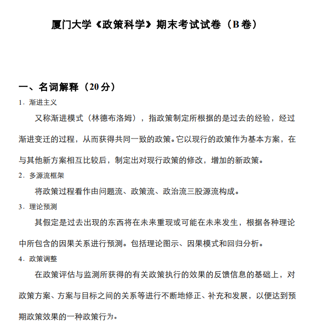 02厦大厦门大学政策科学及答案B卷一套(即一年的).pdf