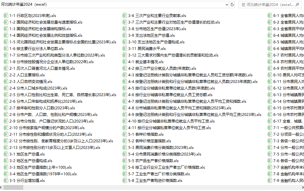 河北统计年鉴2024(excel格式)