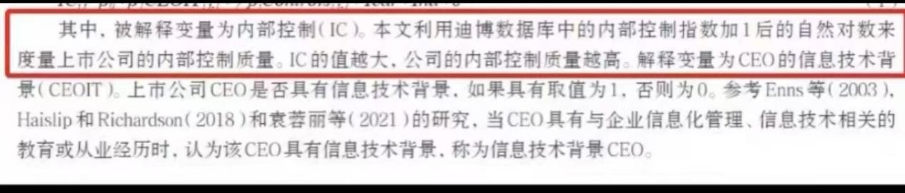 3、参考文献:李瑞敬和党素婷,审计研究,CEO 的信息技术背景与企业内部控制质量