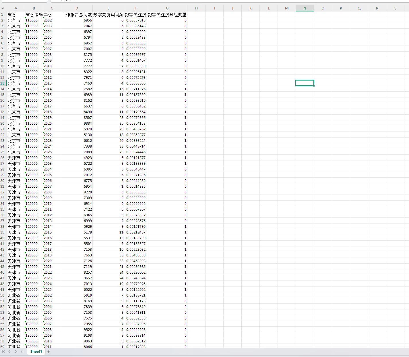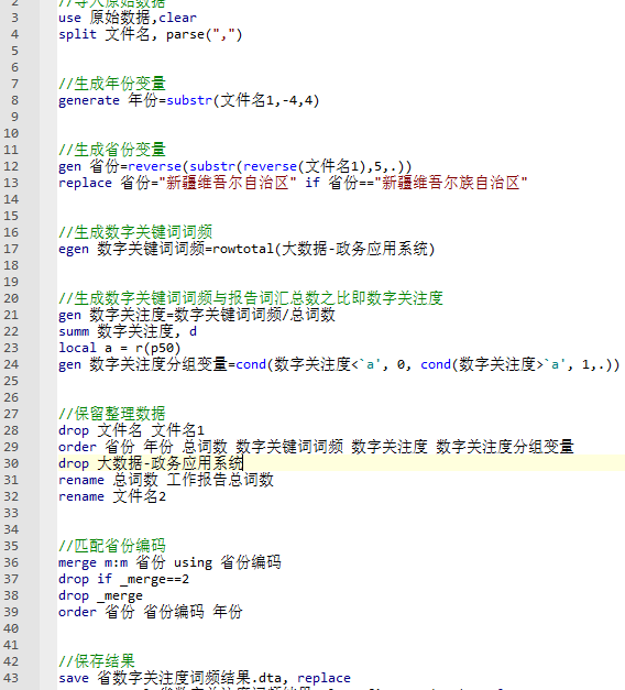 处理说明:原始数据为使用Python对地方政府工作报告进行文本分析后获得(jieba分词,停用词表使用哈工大停用词表),后续使用Stata进行整理,最终形成面板数据形式