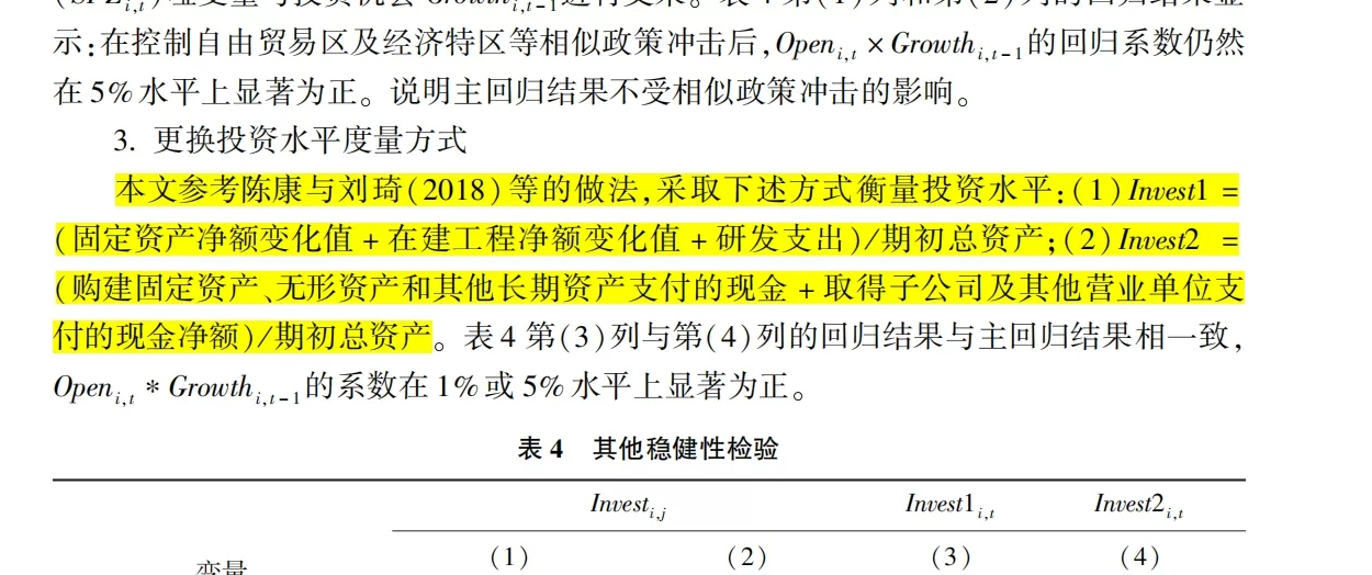 一、计算方式:参考《金融研究》王雄元(2022)老师的做法,企业投资水平等于资本性支出/ 上期期末资本存量,具体如下,大家可以看一下参考文献
