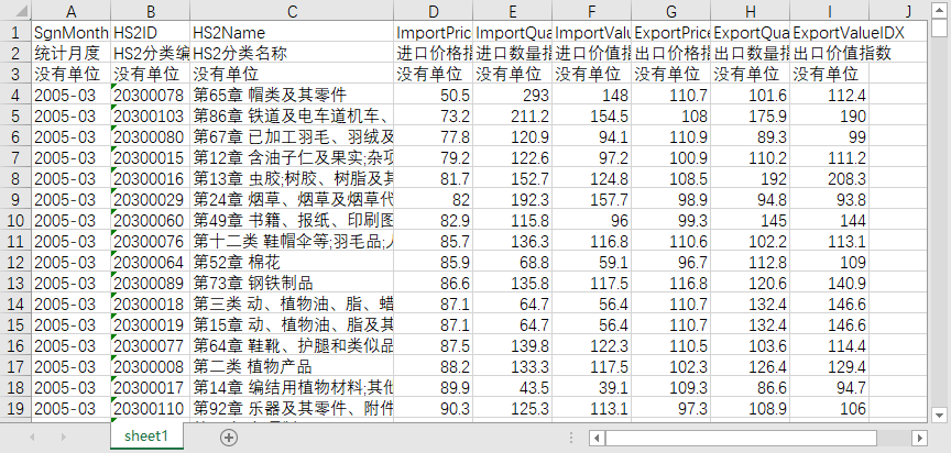统计月度 HS2分类编码 HS2分类名称 进口价格指数 进口数量指数 进口价值指数 出口价格指数 出口数量指数 出口价值指数