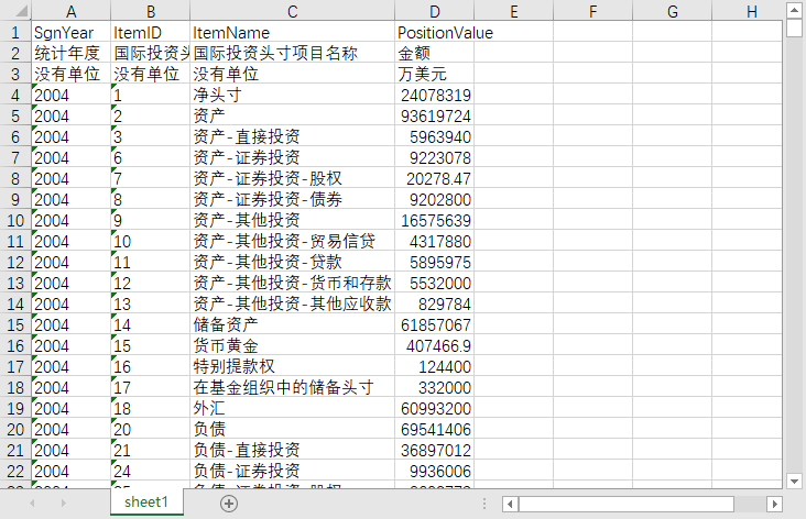 统计年度 国际投资头寸项目编码 国际投资头寸项目名称 金额