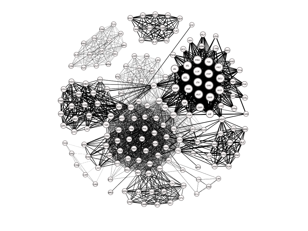 自由贸易协定网络,区域贸易协定网络,区域贸易协定网络中心度