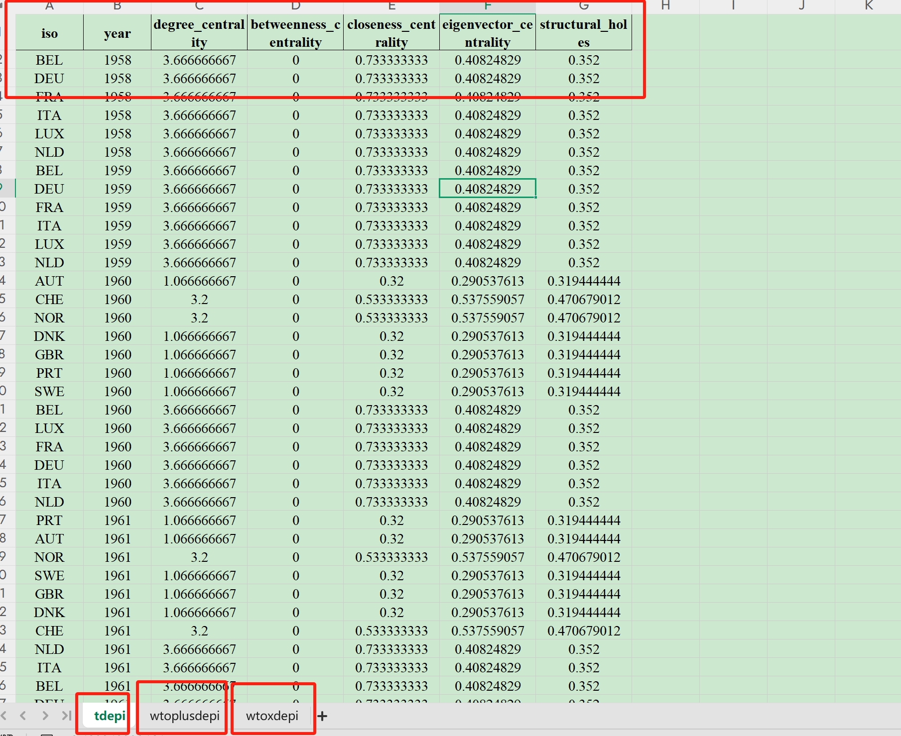 2、自由贸易协定二元网络中心度数据,区域贸易协定二元网络中心度,区域贸易协定深度指数网络中心度
