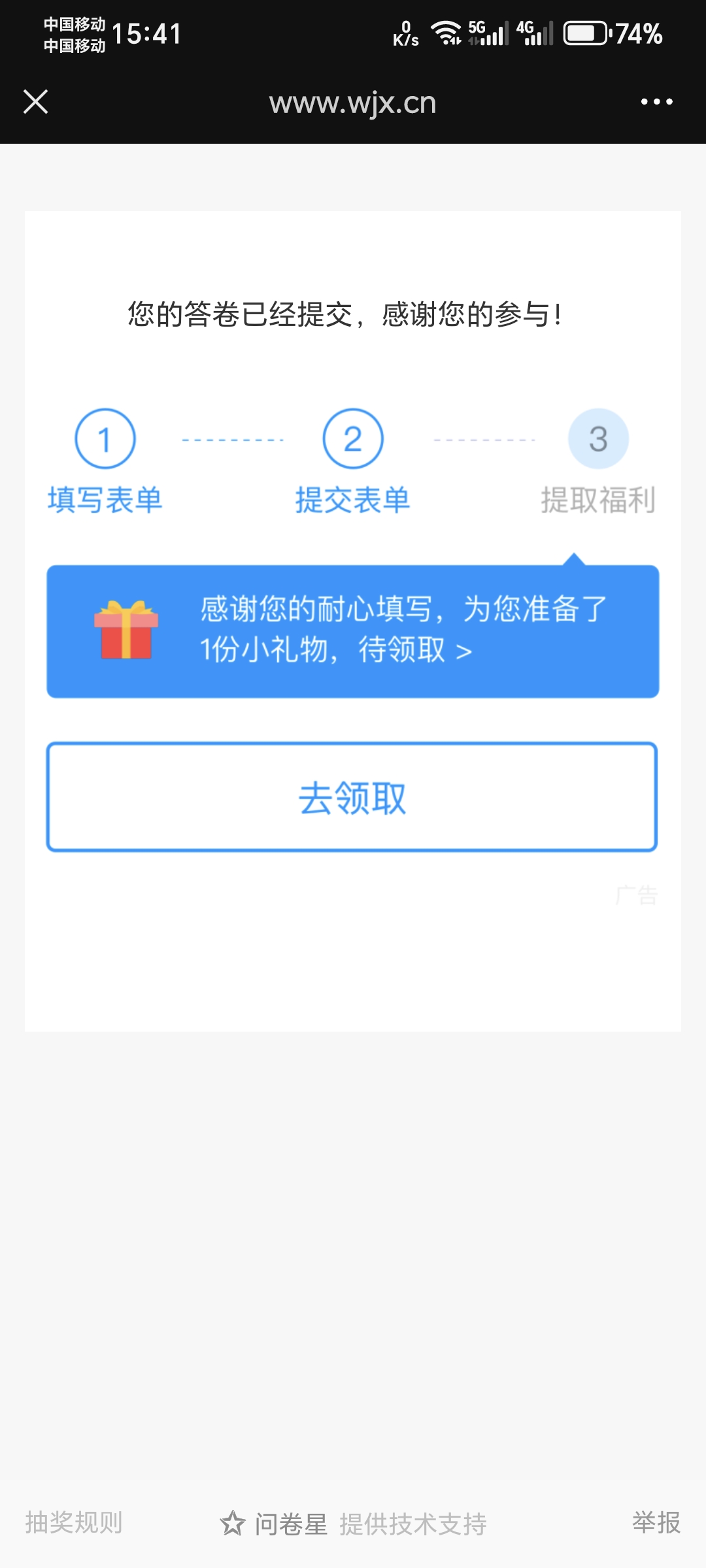 问卷已填写,申请300论坛币