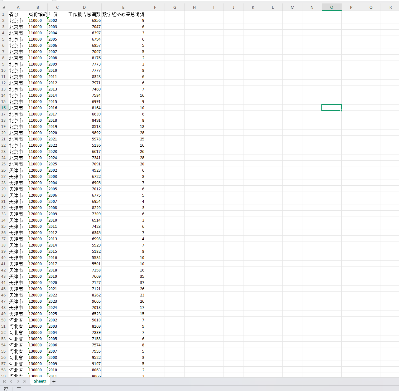 处理说明:原始数据为使用Python对地方ZF工作报告进行文本分析后获得(jieba分词,停用词表使用哈工大停用词表),后续使用Stata进行整理,最终形成面板数据形式