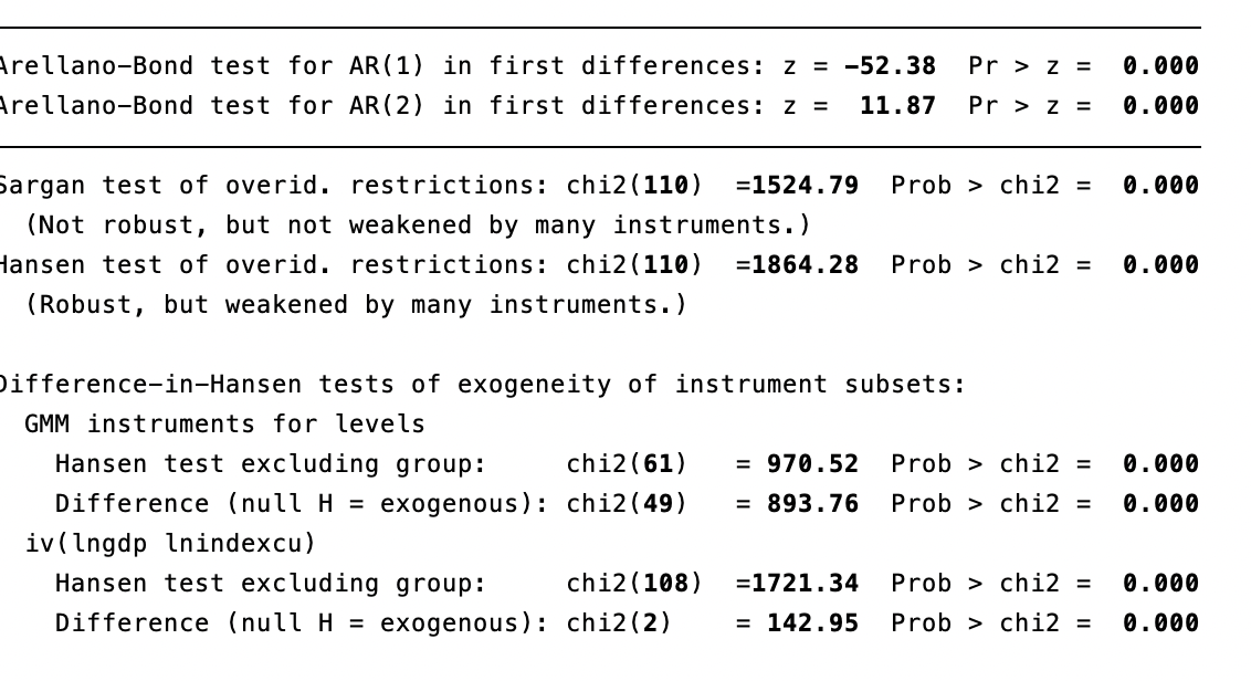 [求助]求教:为什么系统GMM没有显示hansen检验结果?