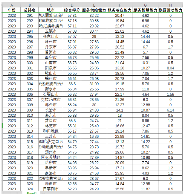 在政府电子服务能力数据中,不论是省级层面还是地级市层面,自2021年起,才包含直辖市;另外,该数据中的指标“数据驱动能力”是在2023年才设置的,在此之前均未有。