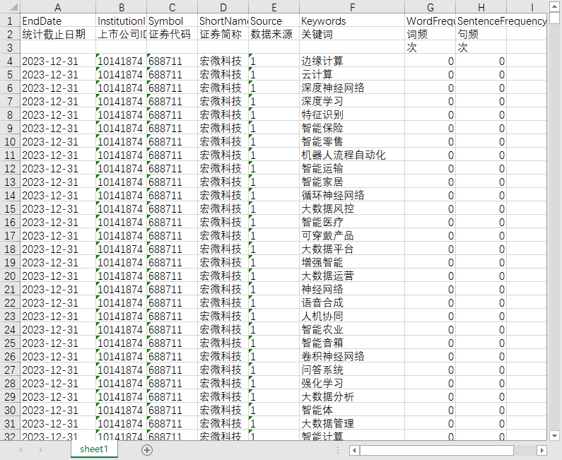统计截止日期        上市公司ID        证券代码        证券简称        年报人工智能总词频        年报人工智能总句频        年报总句数        年报总词数        年报文字数量        MD&A人工智能总词频        MD&A人工智能总句频        MD&A总句数        MD&A总词数        MD&A文字数量