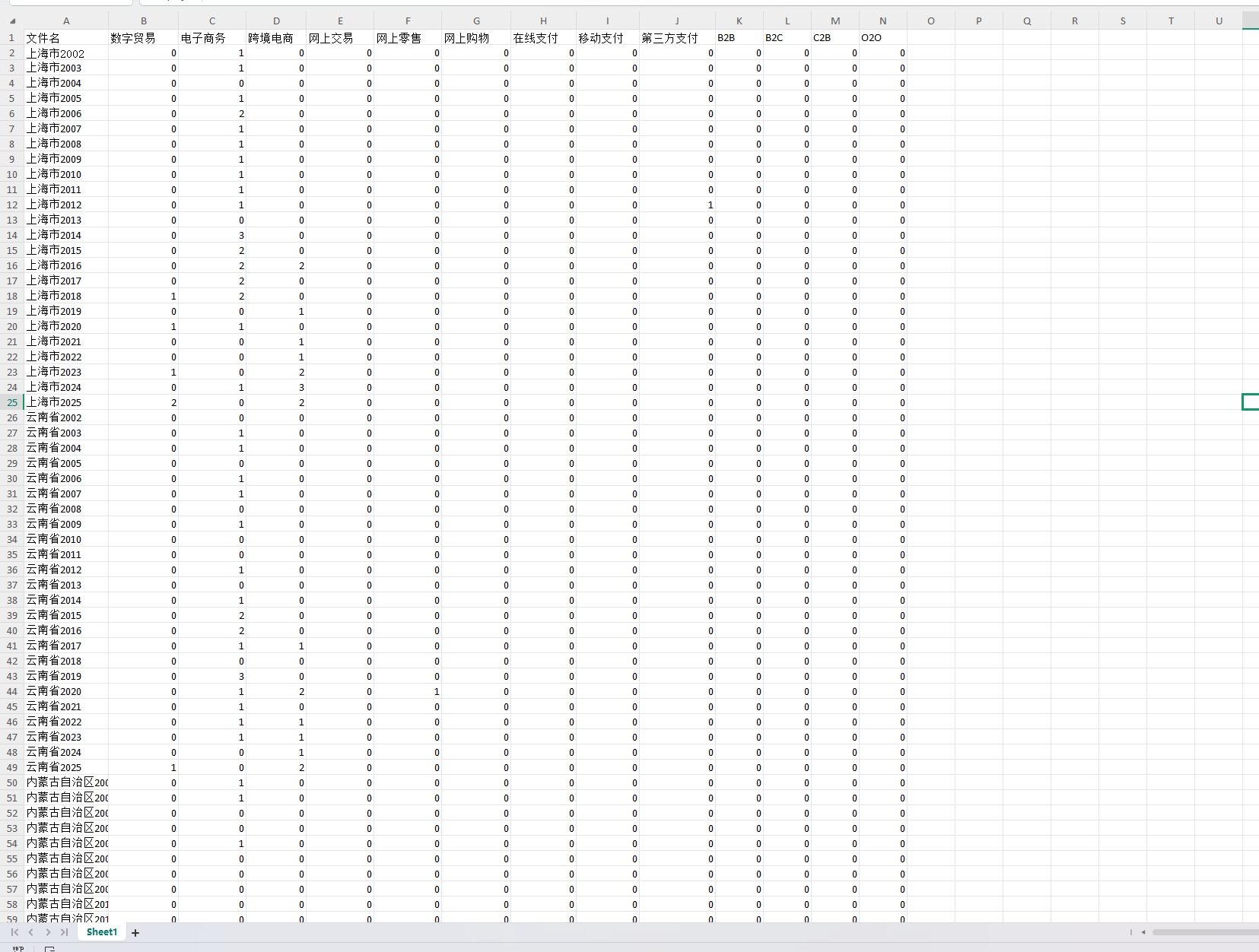 关键词具体为:“数字贸易”"电子商务跨境电商”“网上交易”“网上零售”"网上购物”在线支付”“移动支付”“第三方支付”"B2B""B2C""C2B"“O2O”