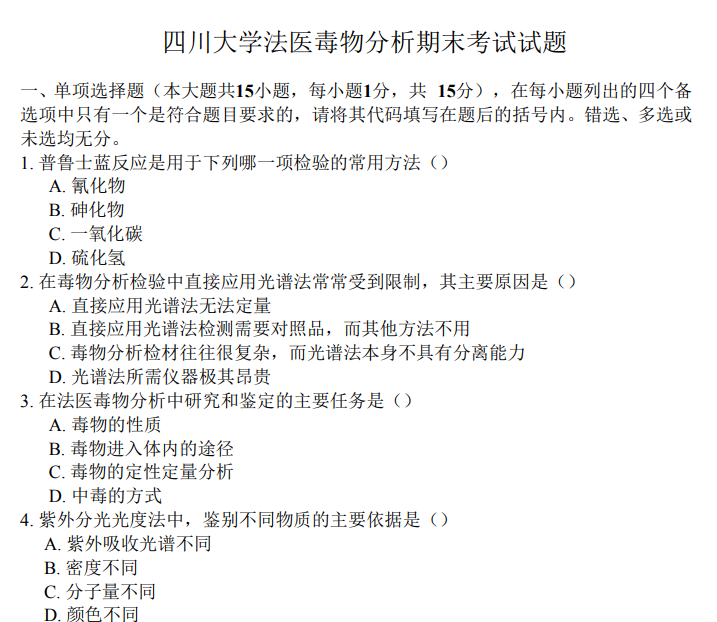 01川大四川大学法医毒物分析及答案一套(即一年的).pdf