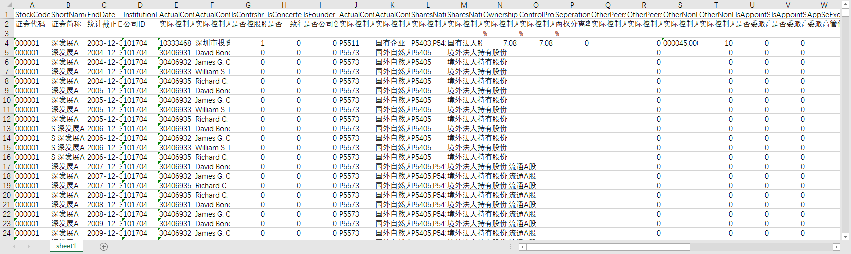 证券代码 证券简称 统计截止日期 公司ID 实际控制人ID 实际控制人名称 是否控股股东 是否一致行动人 是否公司创始人 实际控制人性质编码 实际控制人性质 实际控制人持有上市公司股份性质编码 实际控制人持有上市公司股份性质 实际控制人持有上市公司所有权比例 实际控制人持有上市公司控制权比例 两权分离率 实际控制人控制的其他同行证券代码 实际控制人控制的其他同行股票数量 实际控制人控制的其他非同行证券代码 实际控制人控制的其他非同行股票数量 是否委派高管任职本公司 是否委派高管任职其他同行上市公司 委派高管任职其他同行公司证券代码 委派高管任职其他同行公司证券数量 是否委派高管任职其他非同行上市公司 委派高管任职其他非同行公司证券代码 委派高管任职其他非同行公司证券数量 是否委派董事任职本公司 是否委派董事任职其他同行上市公司 委派董事任职其他同行公司证券代码 委派董事任职其他同行公司证券数量 是否委派董事任职其他非同行上市公司 委派董事任职其他非同行公司证券代码 委派董事任职其他非同行公司证券数量 是否委派监事任职本公司 是否委派监事任职其他同行上市公司 委派监事任职其他同行公司证券代码 委派监事任职其他同行公司证券数量 是否委派监事任职其他非同行上市公司 委派监事任职其他非同行公司证券代码 委派监事任职其他非同行公司证券数量