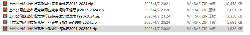 上市公司企业市场竞争行业赫芬达尔指数表1990-2024.zip