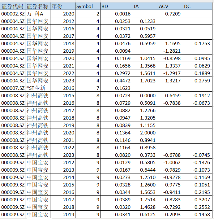 证券代码 证券名称 年份 Symbol RD IA ACV DC