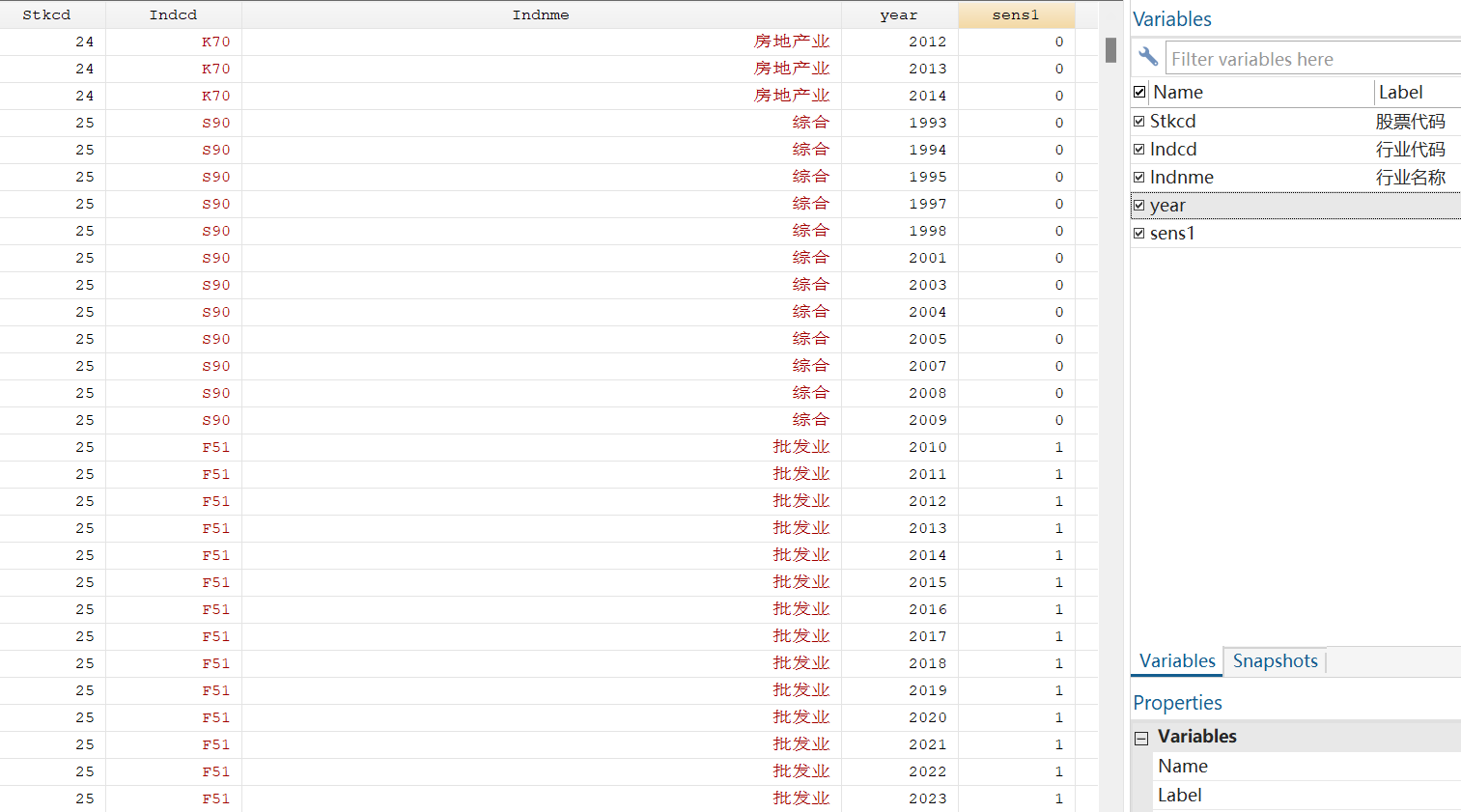 3.资料范围:6.4万个样本,5687家企业,具体指标为 股票代码、行业代码、行业名称、年份、虚拟变量sens1,包括行业基础数据、处理代码和最终计算结果,大家可以验证一下确保准确性!