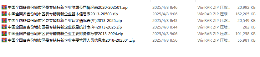 中国全国各省份城市区县专精特新企业主要管理人员信息表2018-202501.zip