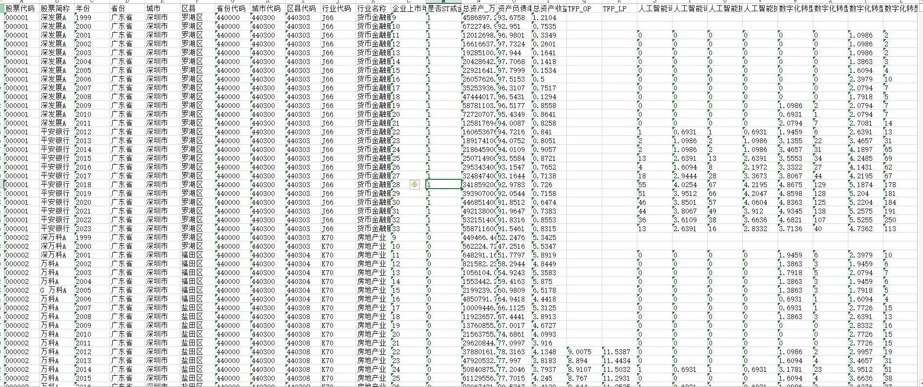 上市公司全要素生产率(1990-2020)