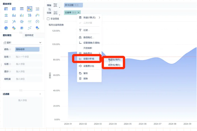 画龙点睛,要有 distinct mark:设置特殊标记,如交易率趋势图中的警戒线,帮助决策者快速定位问题,发现业务中的异常节点,及时采取措施。