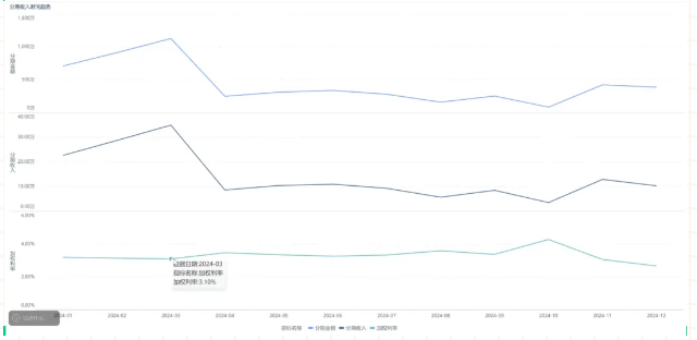 获取收入:通过分期收入表,利用散点图分析分期期数与业务类型的关系,用树状图展示年龄分布对营收的影响,还绘制分期收入趋势图,分析分期金额、收入和利率之间的关系,为业务决策提供数据支持。