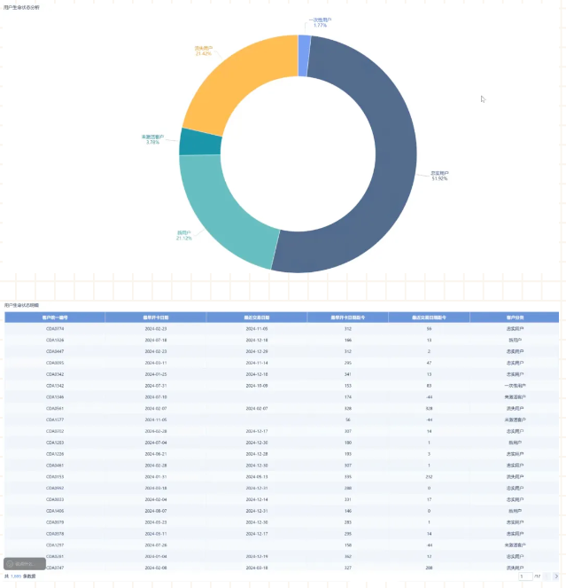 留存用户:对留存率和用户生命状态进行深入分析,运用分组表、环形图和明细表展示数据。留存率计算基于不同时间周期,如计算 1 月、2 月、3 月的留存率,评估用户在不同阶段的留存情况。