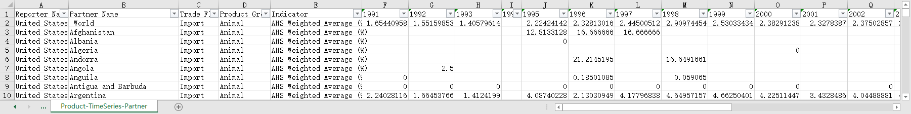 美国从全球世界各国进口按产品分类的最惠国待遇AHS加强平均关税税率数据1991-2022