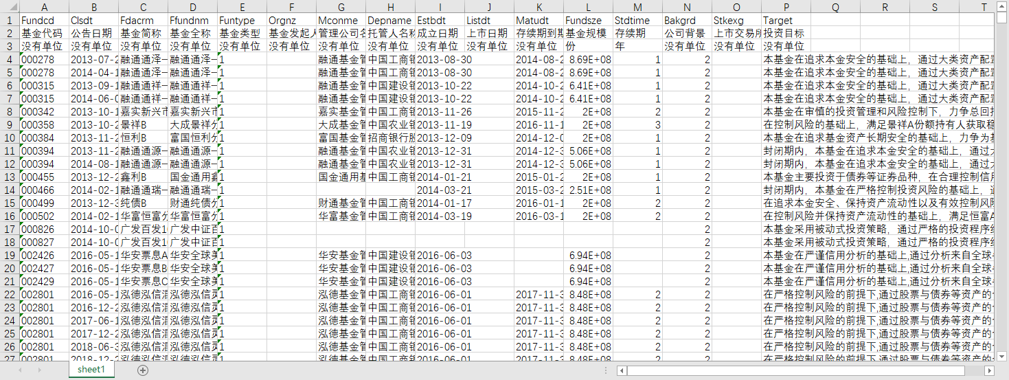 基金代码 公告日期 基金简称 基金全称 基金类型 基金发起人名称 管理公司名称 托管人名称 成立日期 上市日期 存续期到期日 基金规模 存续期 公司背景 上市交易所 投资目标