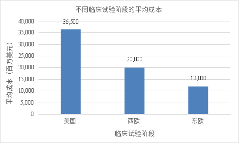 图2:全球不同地区临床试验单位成本(每位受试者的平均花费)比较。图中显示了在美国、西欧、东欧、亚太和拉丁美洲进行临床试验的人均成本差异。可以看到,美国临床试验的单位患者成本最高,平均每位受试者约耗资36,500美元。西欧等发达地区次之,每例患者费用大致在1.5万~2.5万美元之间。相比之下,东欧、亚洲、拉美等新兴地区的试验成本明显更低,通常仅为美国的一半左右。例如,亚洲的临床试验成本平均比西方国家低25%~40%;又据调查,在印度开展试验可比美国节省约44%的费用。造成这些地域差异的原因在于各地区的人力和运营成本差异(如研究者薪酬在美国最高,东欧和亚洲较低),以及患者获取难易程度和监管要求不同等因素。例如,美国试验中心经验丰富但费用昂贵,而一些新兴国家患者资源丰富且成本较低,但需要克服监管和基础设施方面的挑战。综上,药企在全球布局临床试验时,会综合考虑成本与质量之间的平衡,在保障数据可靠性的前提下选择有成本优势的地区开展研究。