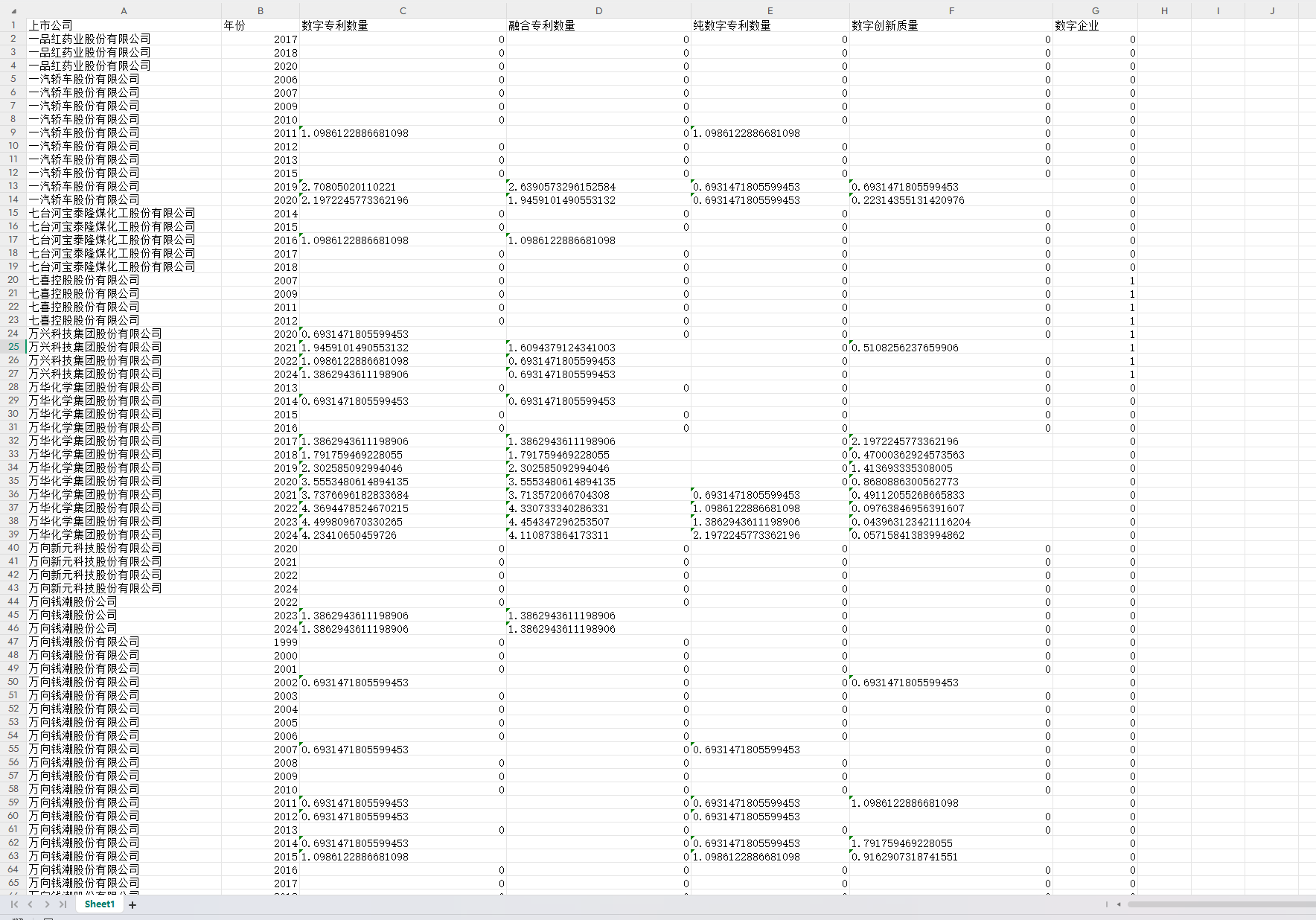 本数据参考陶锋等(2025)的做法,基于谷歌专利数据,构建企业的数字创新数量、数字创新质量、数字技术融合创新和纯数字技术创新指标具体做法如下。