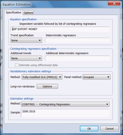 Youno 发表于 2015-3-3 19:38 eviews可以实现FMOLS和DOLS