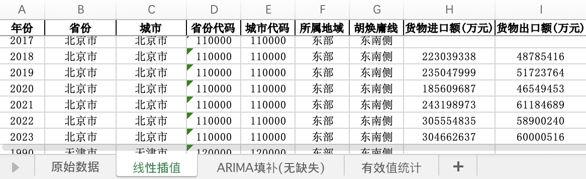 (全部年份) | 线性插值有效值