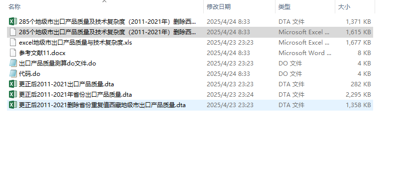 数据名称:285个地级市出口产品质量与出口技术复杂度。