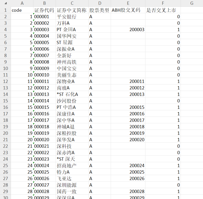 是否交叉上市:若公司有交叉上市公司代码(同时在A股和B股或H股上市)取1,否则取0