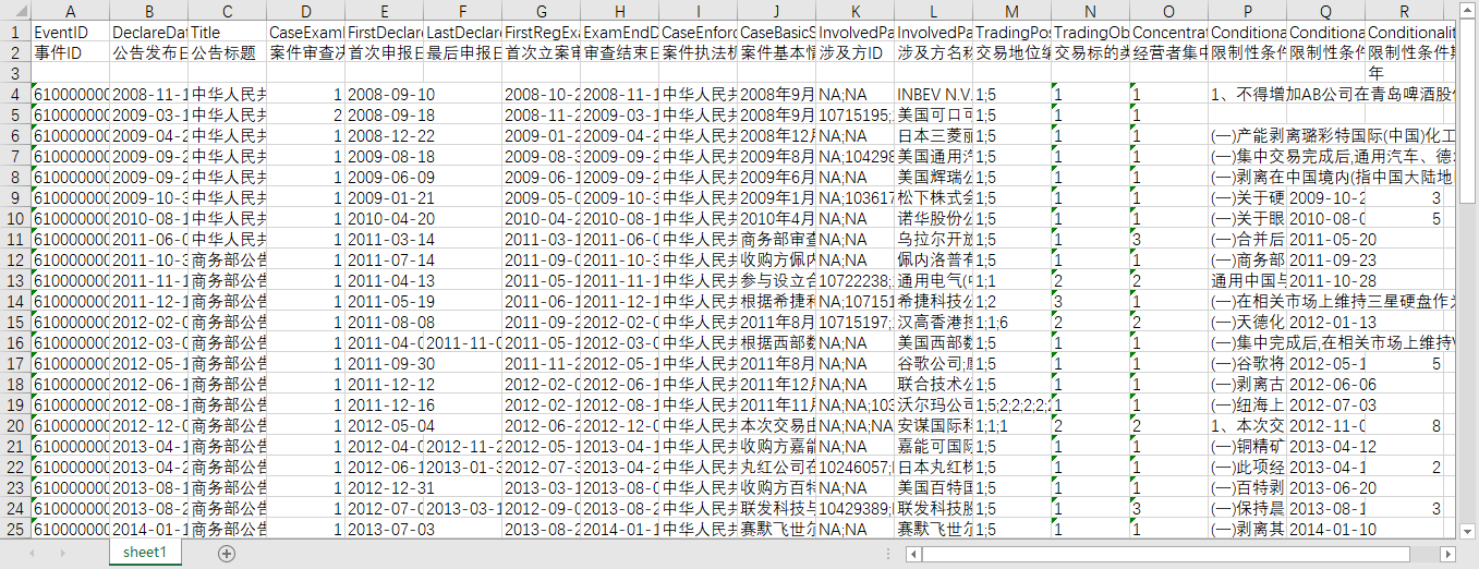 事件ID 公告发布日期 公告标题 案件审查决定 首次申报日期 最后申报日期 首次立案审查日期 审查结束日期 案件执法机构 案件基本情况 涉及方ID 涉及方名称 交易地位编码 交易标的类型 经营者集中方式 限制性条件 限制性条件提交日期 限制性条件期限