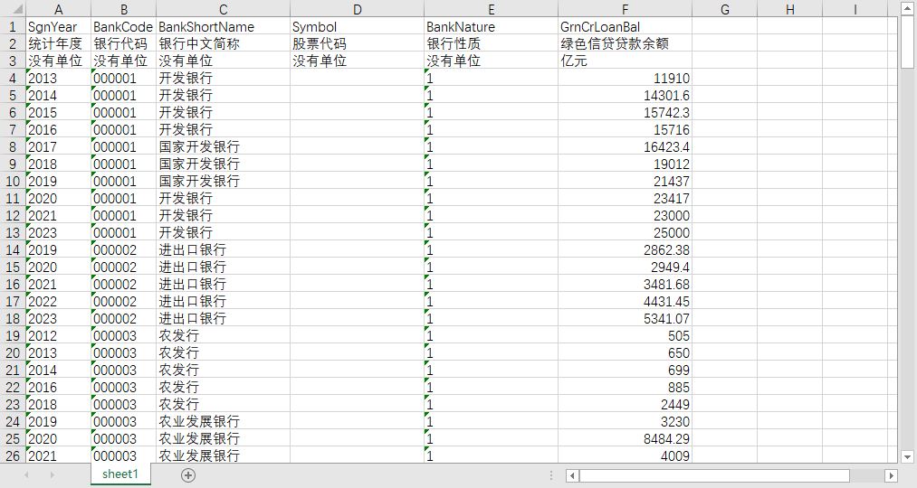 统计年度 银行代码 银行中文简称 股票代码 银行性质 绿色信贷贷款余额