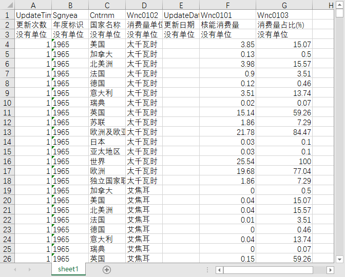 更新次数 年度标识 国家名称 消费量单位 更新日期 核能消费量 消费量占比(%)