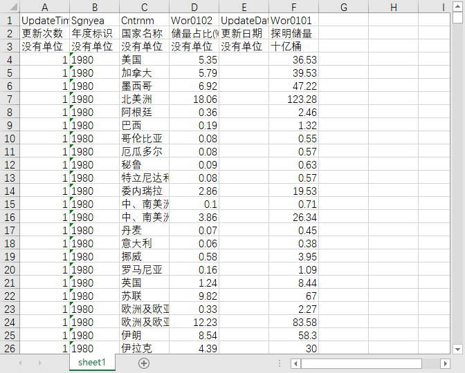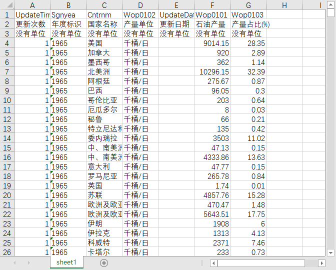 | 更新次数 | 年度标识 | 国家名称 | 产量单位 | 更新日期 | 石油产量 | 产量占比(%) |