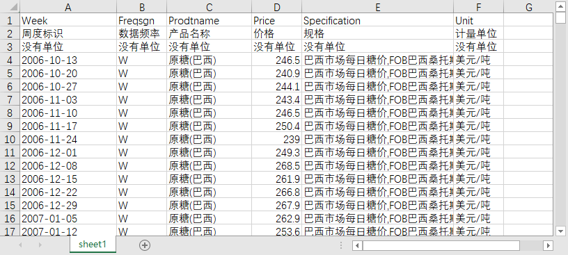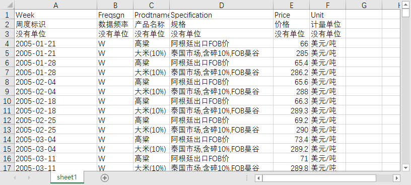 周度标识 数据频率 产品名称 规格 价格 计量单位