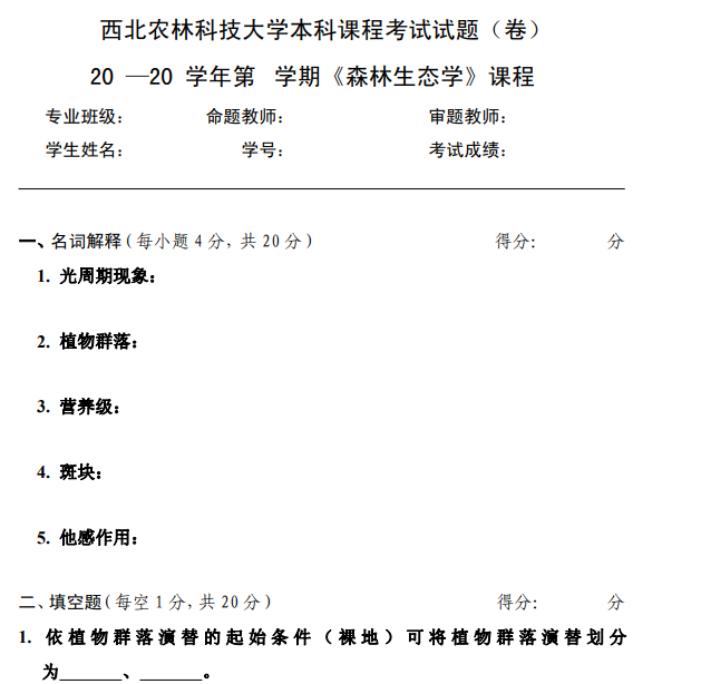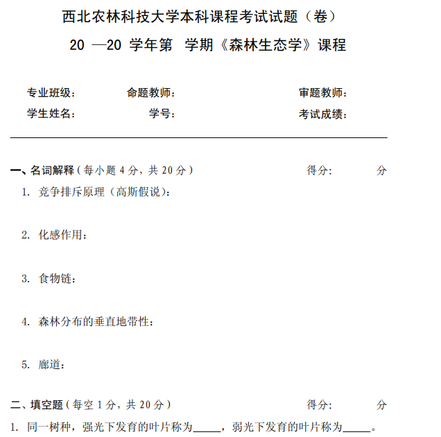 01西农西北农林科技大学森林生态学(无答案)一套(即一年的).pdf
