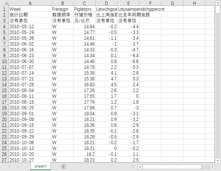 统计日期 数据频率 仔猪价格 比上周涨跌 比去年同期涨跌